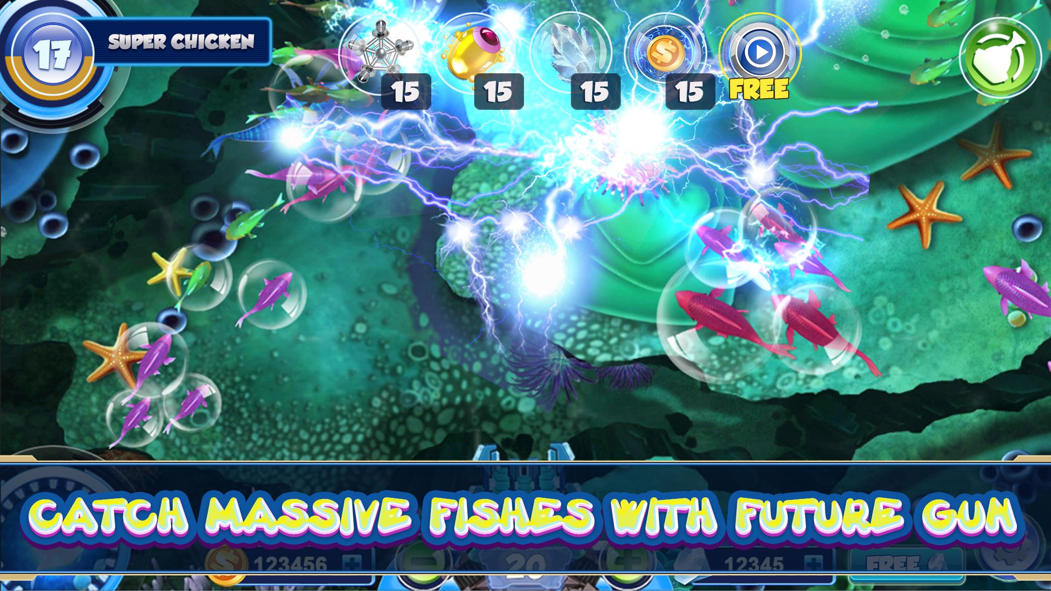 Guns System in Mermaid Joy: Fishing Diary to catch fish: There are 11 different type of weapons, each weapon have a different power and explosive , when full energy you can active an extreme ultimate weapon to catch massive fishes, these are two secret amazing weapons which will drop randomly when you shooting the fishes. When you use a bigger gun you will have a higher chance to catch fish.