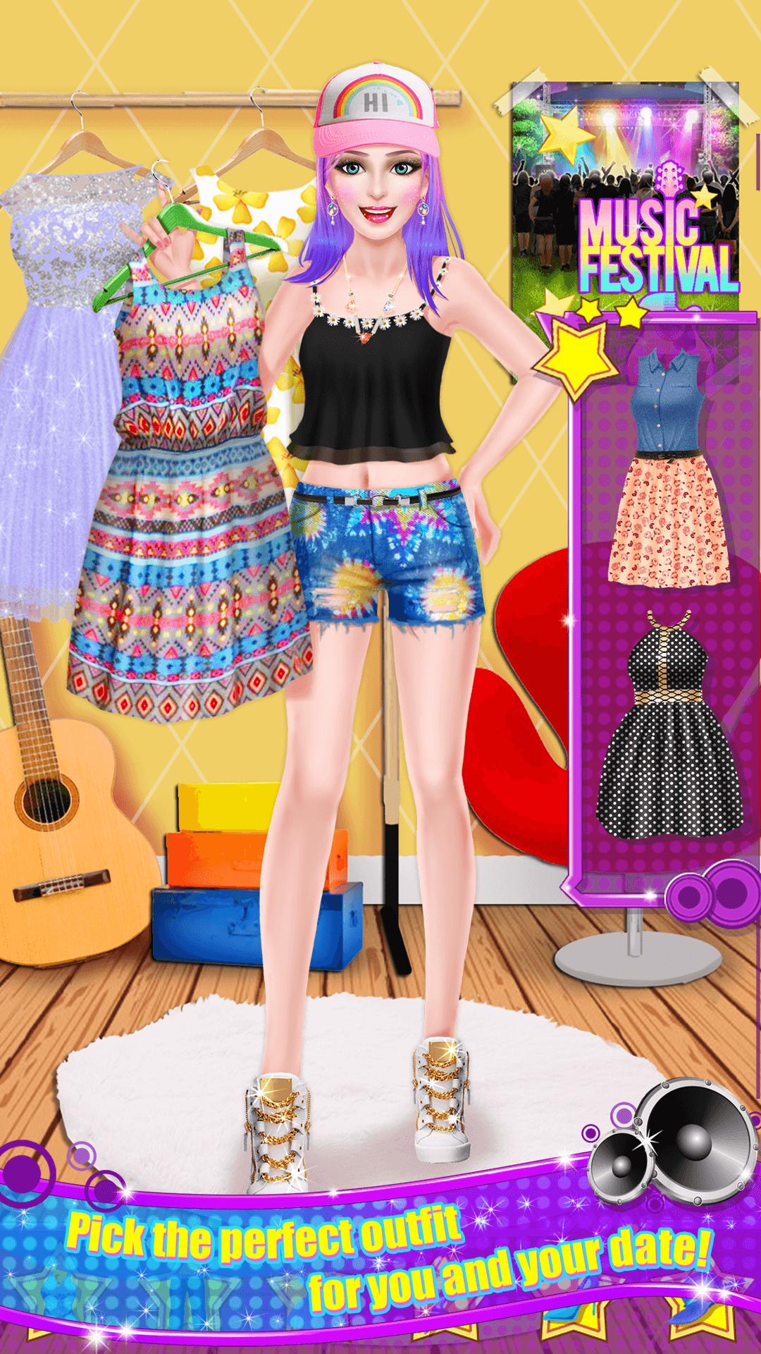 Music Festival Girl – Concert Date is a fun makeover game that let’s you get all dolled up for a unforgettable night out with your crush. The salon has tons of options to dress up, so you’ll never run out of looks for whatever you heart desires. Hop in the chair and get a nice, relaxing spa treatment to clean your face and calm those pre-date butterflies. Choose cute makeup and hairstyles to show off your favorite assets: is it your smile or your eyes? Finally, dress up in a hot outfit perfect for your hot date! No matter what you choose, this will be one night you’ll never forget!