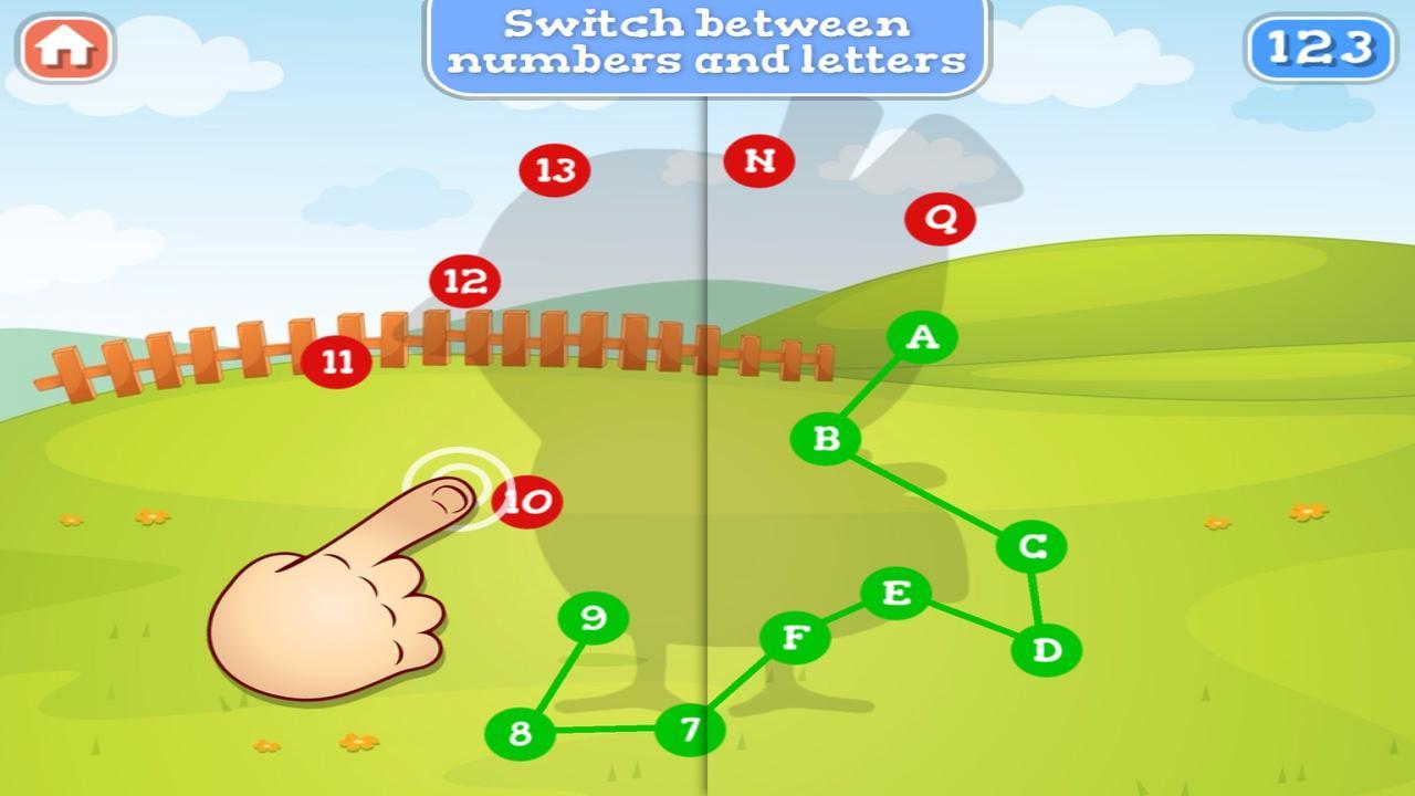 The Dot to Dot (Connect the Dots) game interface is kid friendly and does not overload your kid with too many stimuli. The game helps to recognize shapes and to improve the fine motor skills of your kid. By tapping on the small dots one after the other, the order of the letters in the alphabet can be learned and recognized step by step.