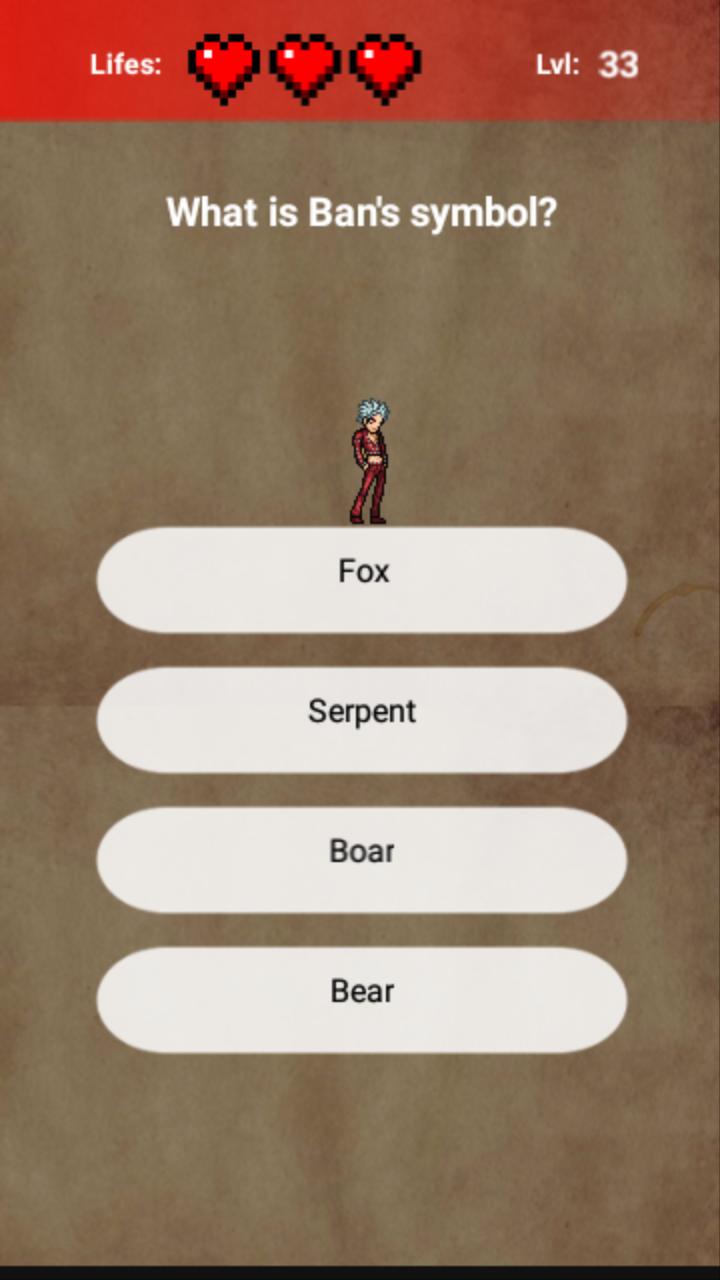 Nanatsu Quiz (Old Meliodas Quiz) is a tribute to the anime Nanatsu no Taizai or The Seven Deadly Sins (in english).
