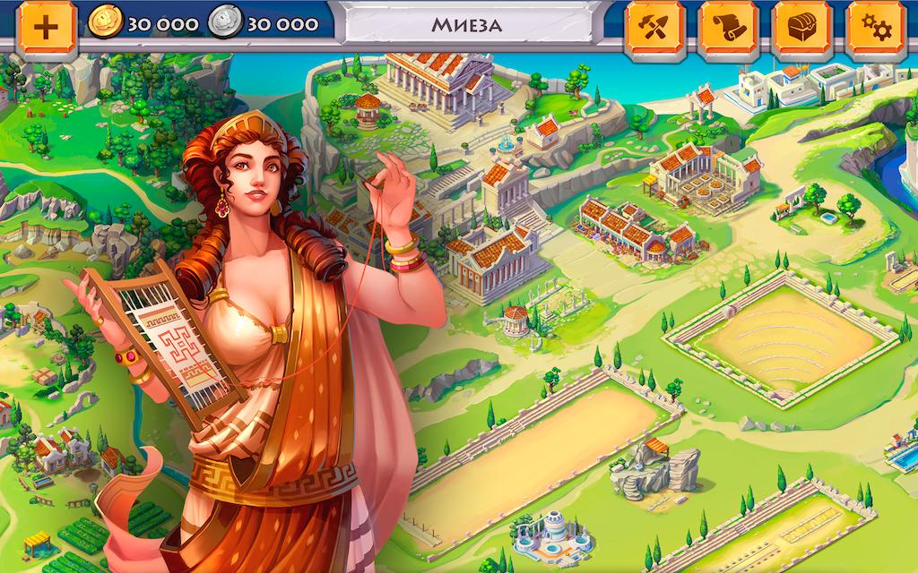 Take on the role of the ancient Greek ruler and improve your possessions: grow crops on farms, get useful resources, make equipment for training and rebuild buildings to bring the policy to prosperity!