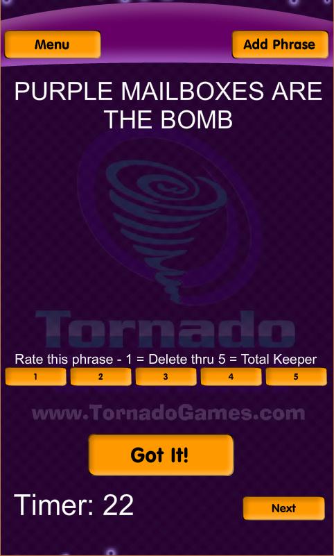 Our database of phrases is growing and you can help. Submit your phrases through our app. We review all phrases submitted and if we like it we will add it to the game.