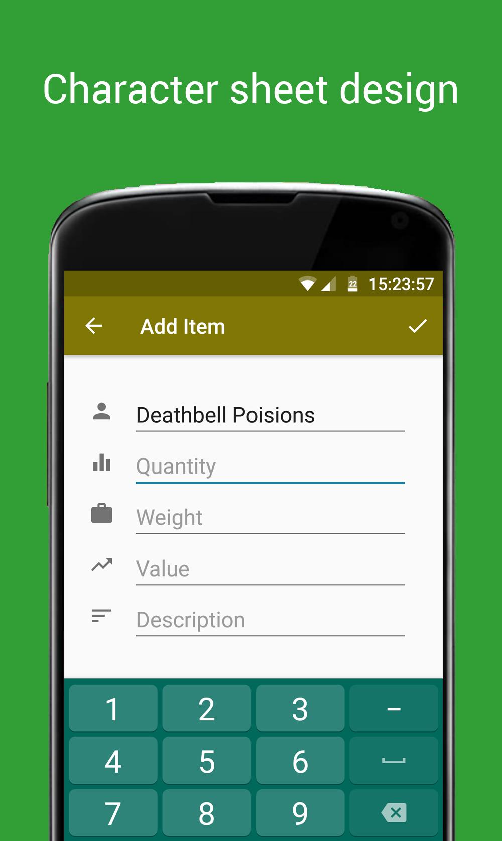 By adapting the tried and trusted inventory style of simply writing a Name, Quantity and Description - your Dungeon and Dragons, Pathfinder or any other role playing game will have such an effortless inventory, you won't ever go back to pen and paper.