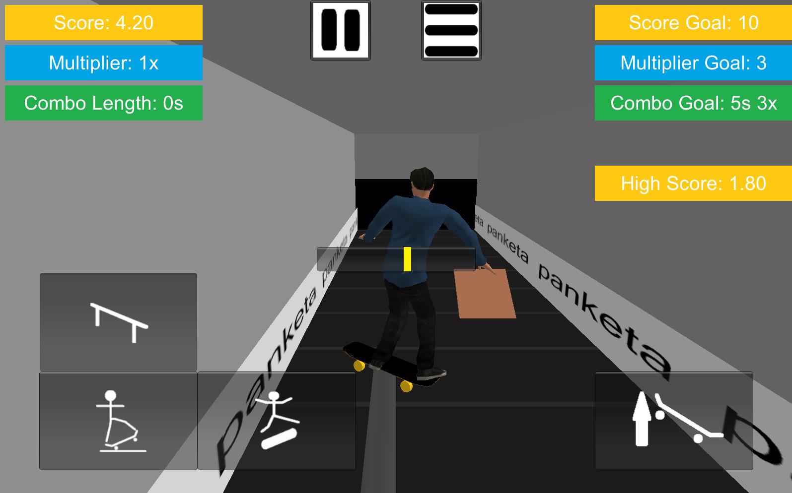 Skate on a conveyor belt loaded with random objects to perform tricks on. Keep your balance while or grinding on rails, perform kick flips, dodge boxes, and perform manuals to make long combos and generate high scores.