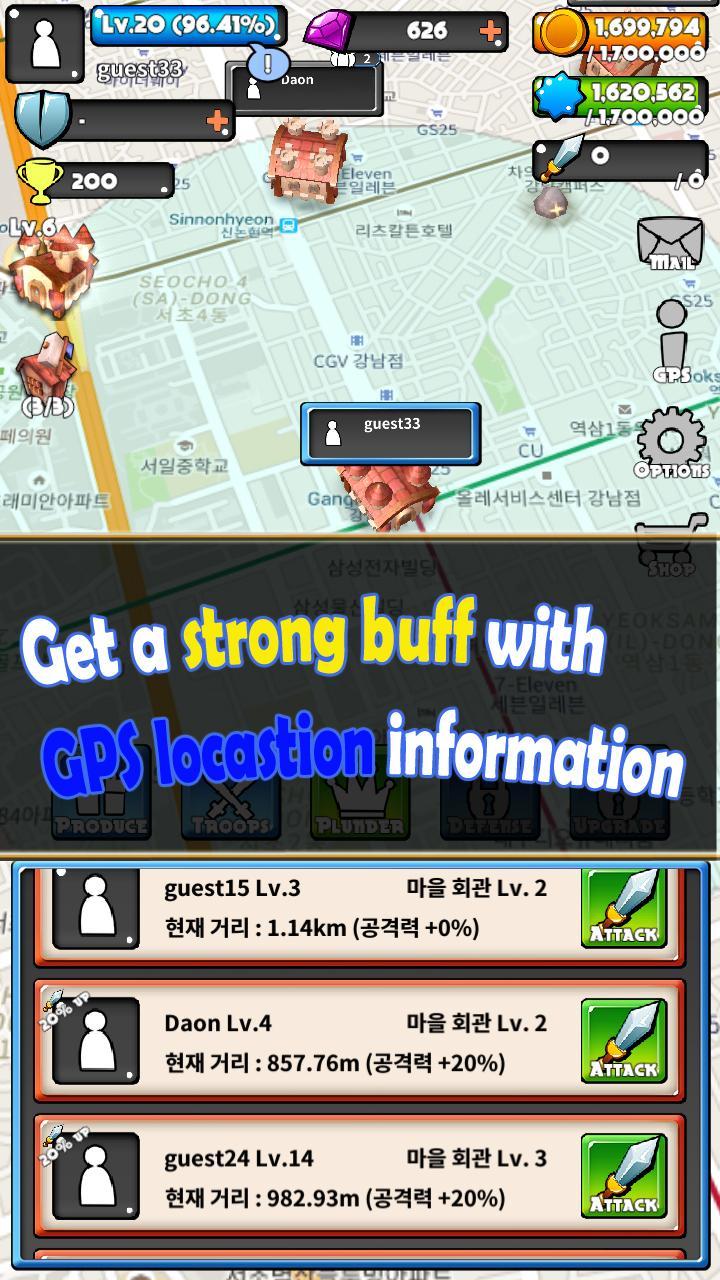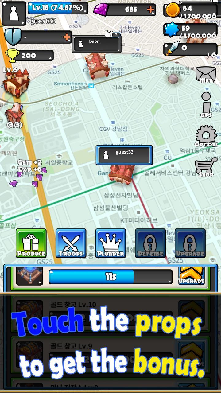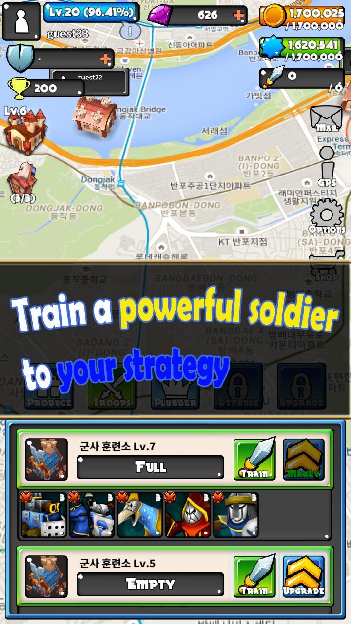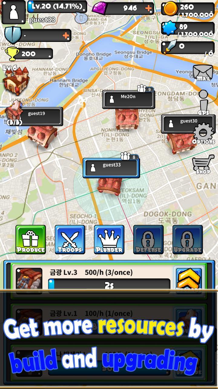 Build your own castle based on your own real-world location, and produce mercenaries to pluner other players.