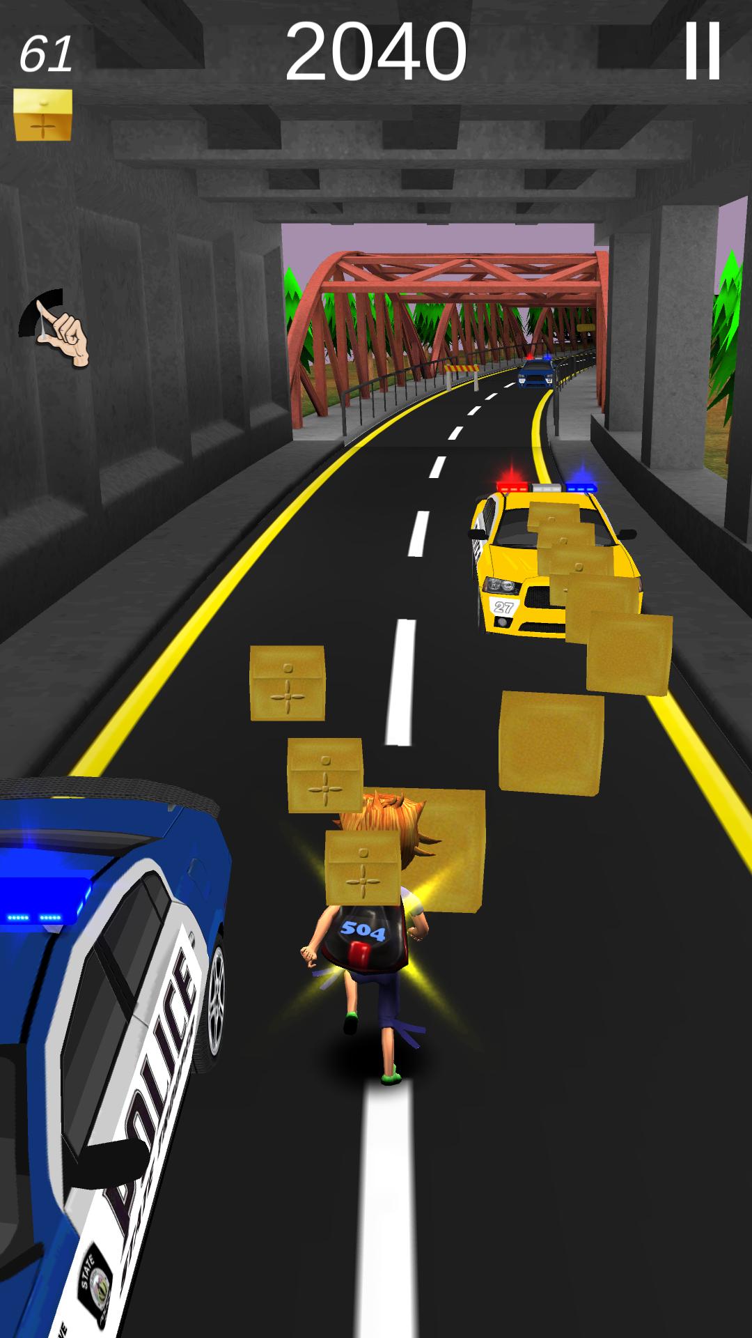 Run Fo It as long as you can while dodging police cars, barriers, stop signs and spikes! It won't be easy as you will have to make sharp turns, run on walls and swing on poles.