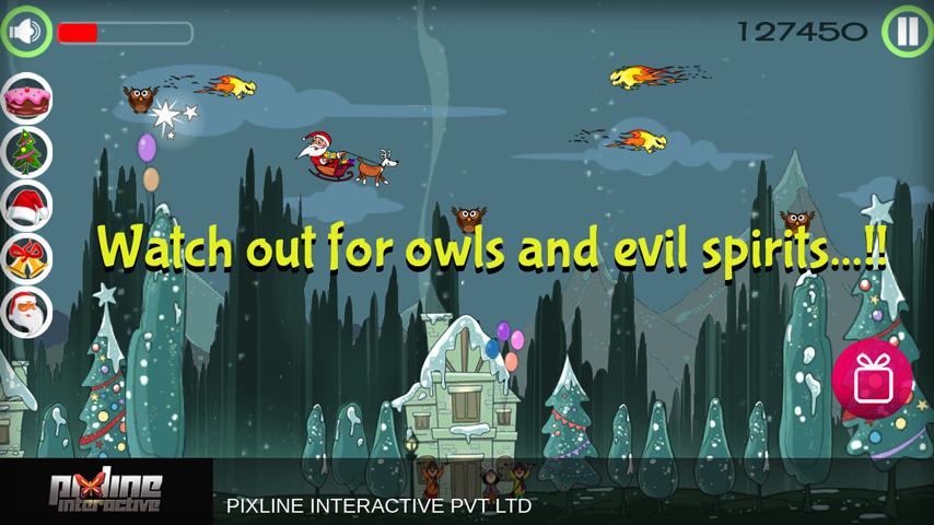 Help Santa deliver his gifts while avoiding owls and nasty, evil spirits along the way.