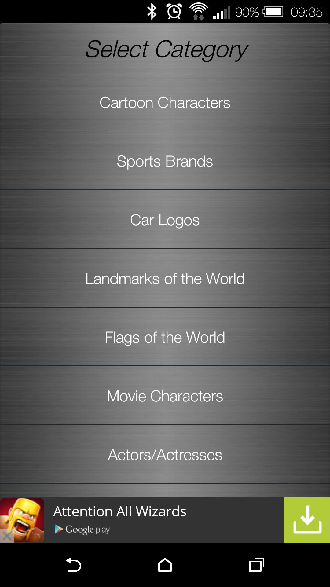 There are multiple categories to select from - Actors/Actresses, Movie Characters, Cartoon Characters, Landmarks, Flags, Sports Logos, Car Logos etc.