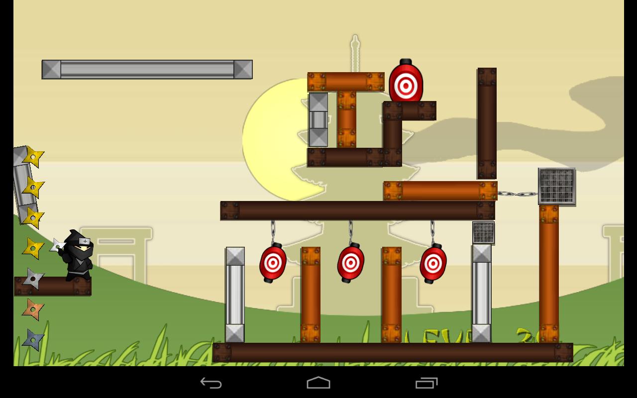 The ninja stars are physics based and will ricochet or stick to different surfaces. Get the right angle to break the targets.