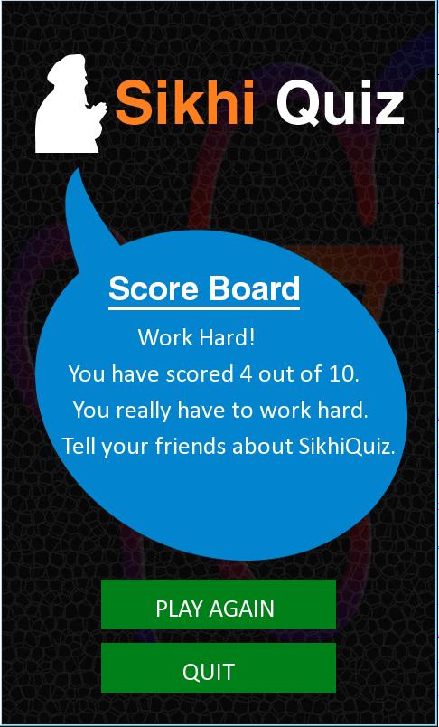 It is a quiz game app which will ask you questions about Sikhism from its wonderful history in four different areas such as about Gurus, Gurudwaras, Gurbani and Sikh freedom fighters.
