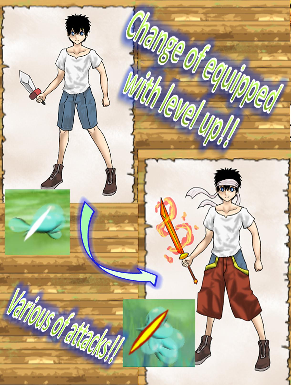 You are able to get GOLD and EXP Point to knock out slimes.