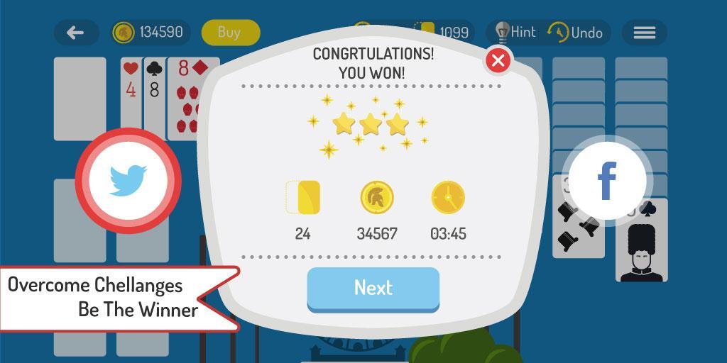 - Share and compare your scores and achievements by connecting this solitaire card game app on your Facebook or Twitter account