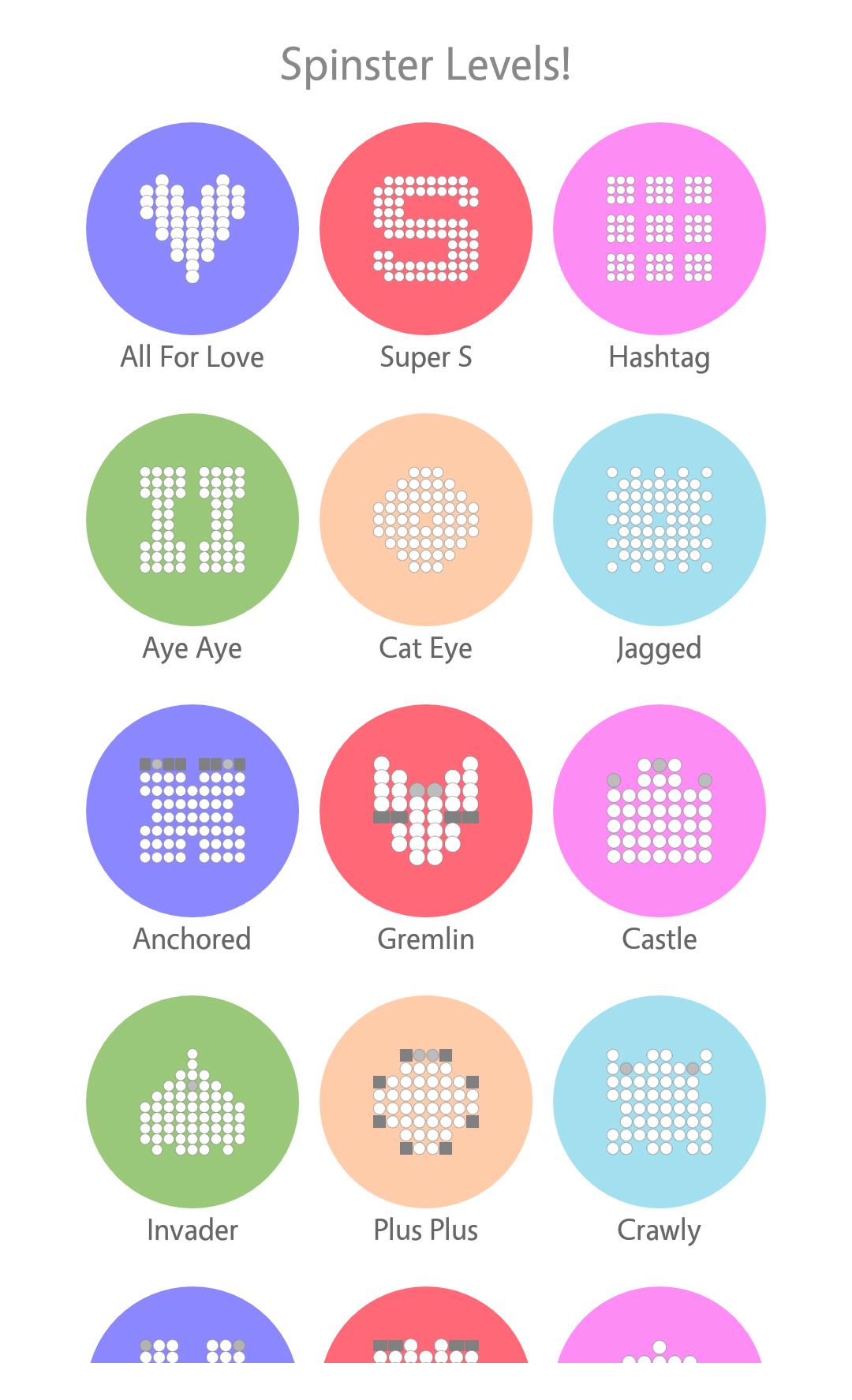 Spinster includes 48 levels to beat, along with 6 open levels of timer-based movement and 6 open levels of move-limited challenge, with achievements and leaderboards for every level!