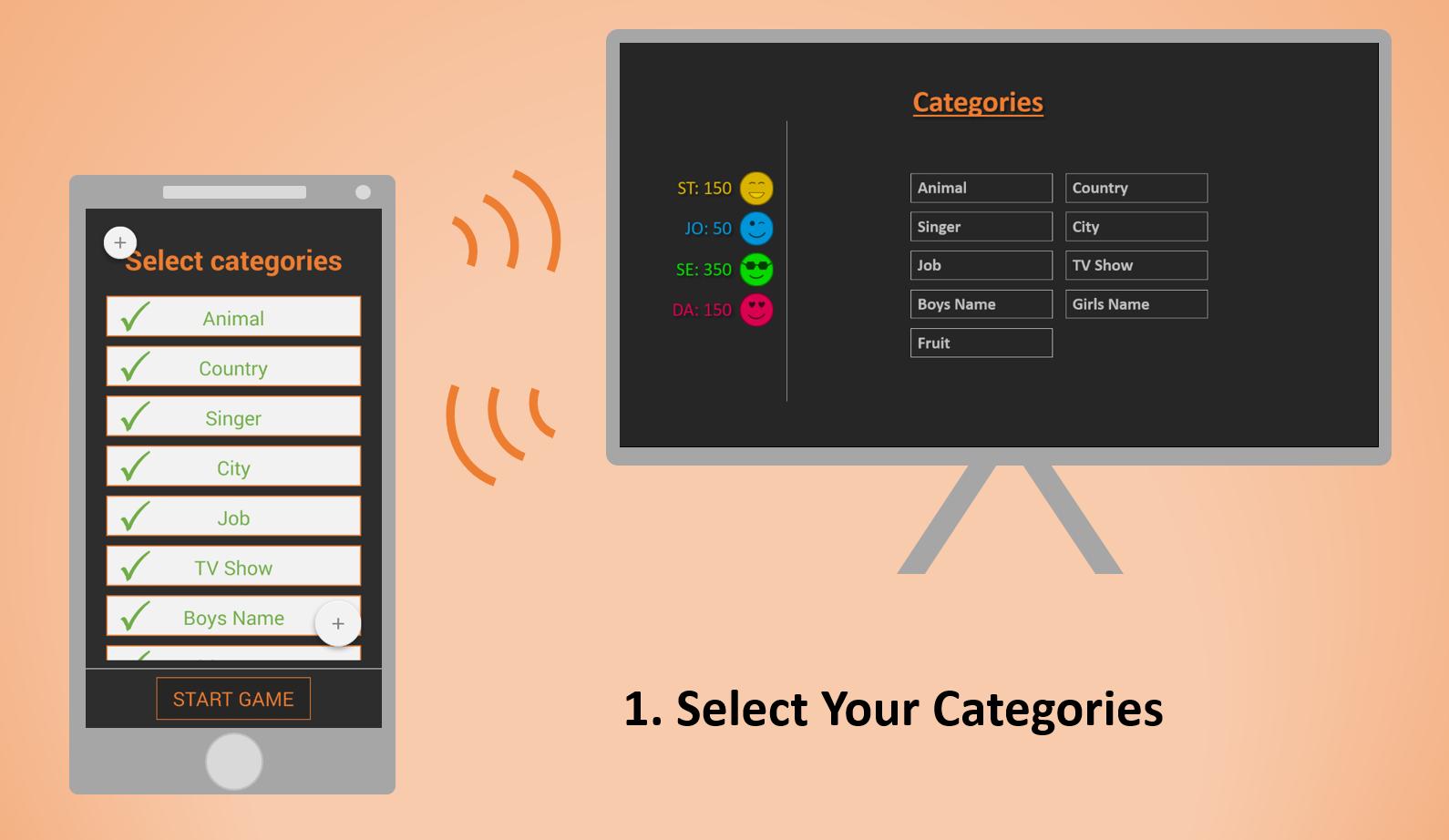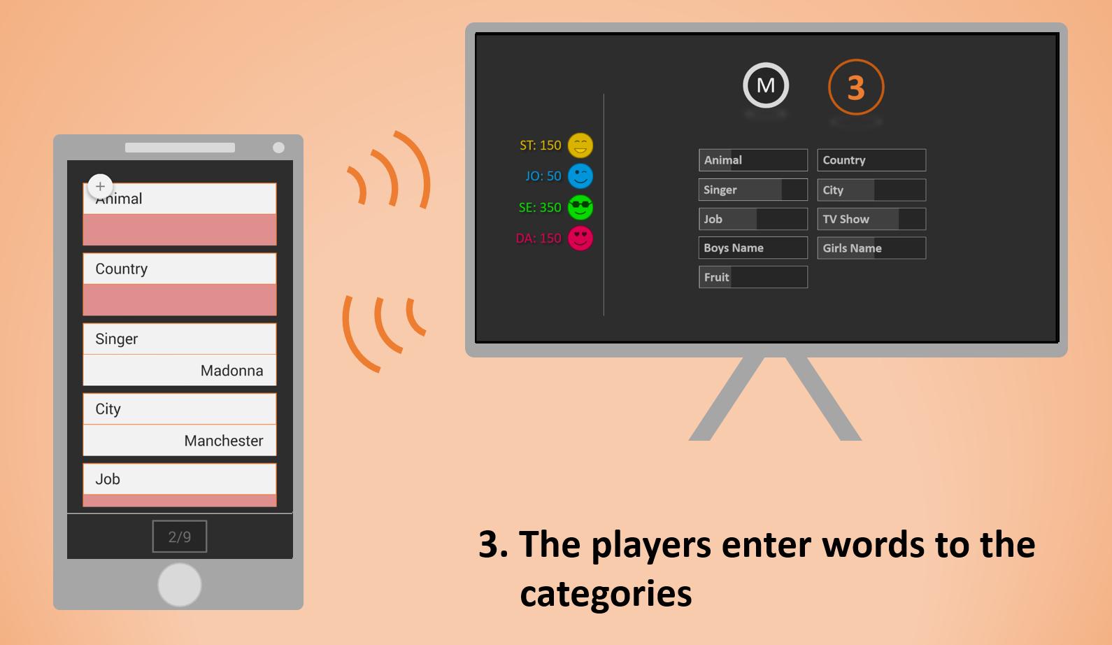 3. You and your Friends enter the Words starting with the picked character for each of the Categories on your own Smartphones