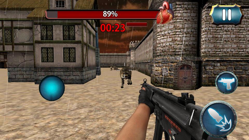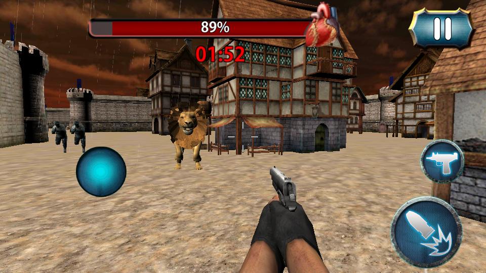 Take cover and move fast, the enemy is on your tail and the wild beasts are on the loose. Choose from 2 killer weapons to lay assault on these modern enemies. Blaze away with a hefty assault gun and if the going gets heavy, equip the super-fast handgun for quick shooting action.