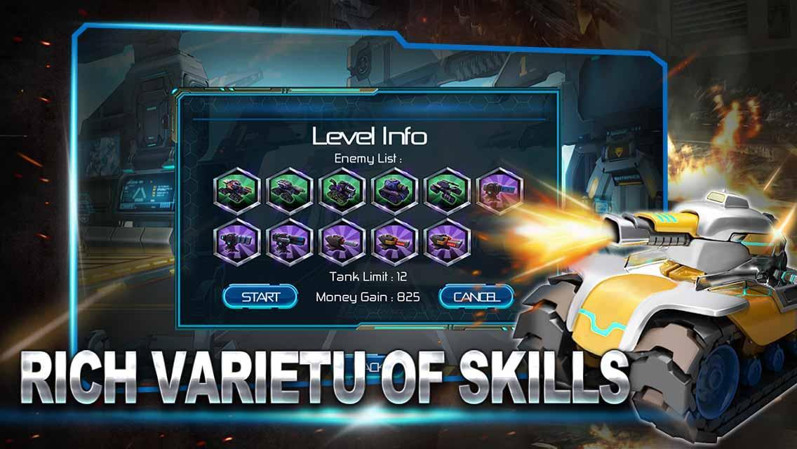 Enemy tanks will move and attack once you have commanded all your tank's action . Pay attention that enemy towers can’t move . So it’s important for you to calculate how to destroy all your enemy at minimal cost because the remaining tanks will be inherited to the next level .