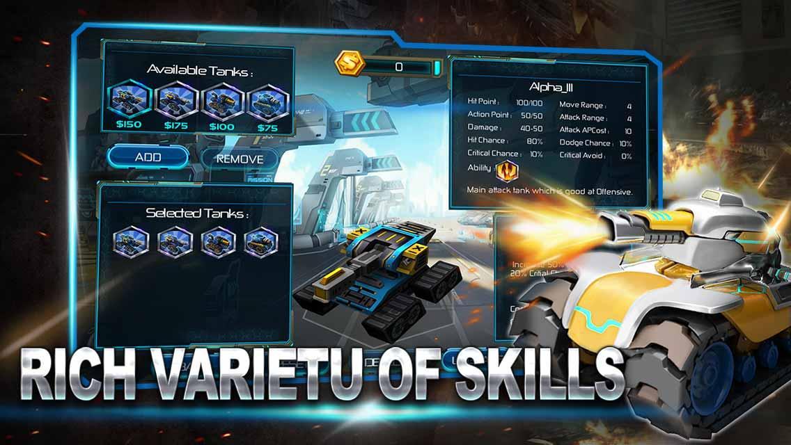 Before start battle , you can buy tanks that you like , upgrade them with money , check out each tank's info , then deploy them manually on the battlefield .