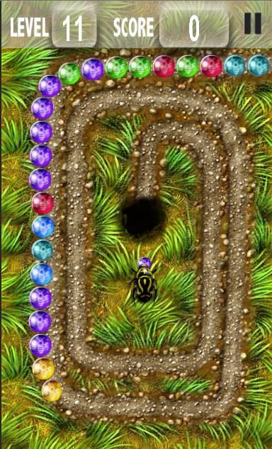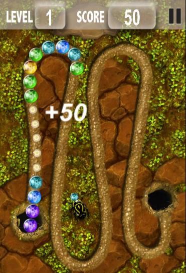 our objective is Tap on screen to target and Shoot all the marble ball by coordinating them before they achieve the end of the Path.