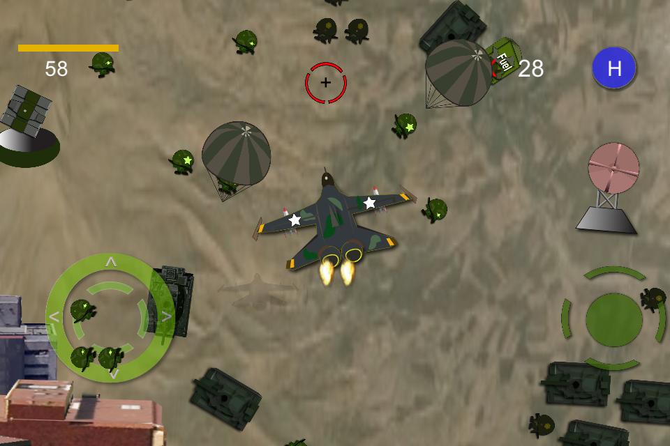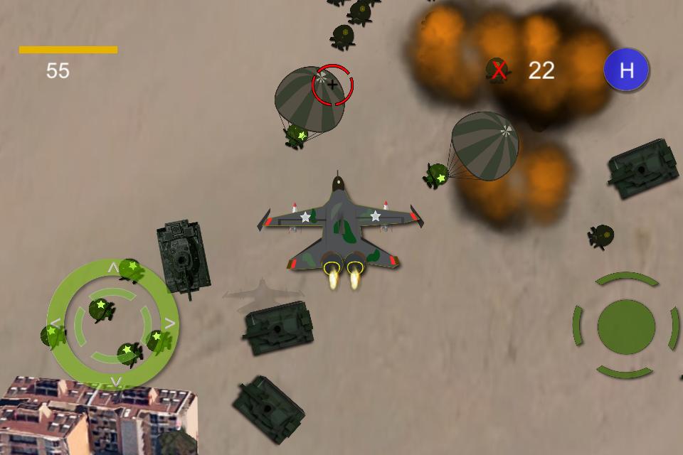The new power attack to the east area, some of our country. Your mission you have to fly the Jet to strike them and push them back off our City or help our troops to fight back, you have to quickly strike enemy troops and tanks as quick as you can will help our defend troops jump off the plane , they will help you to prevent enemy tanks and troops . Dont let them attack our headquarter building on the ground. Then many thing will happen on battlefield