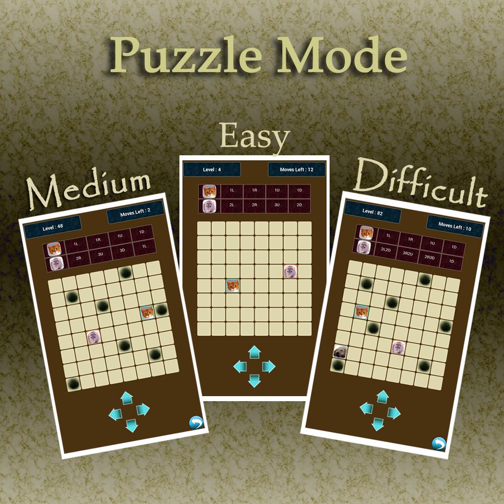 - Cat and Rat are two elements in puzzle mode. User plays for cat and has to TRAP THE RAT.
