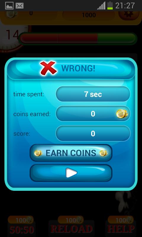 For every incorrect answer you won't be rewarded with coins and points, and the correct answer won't be revealed.