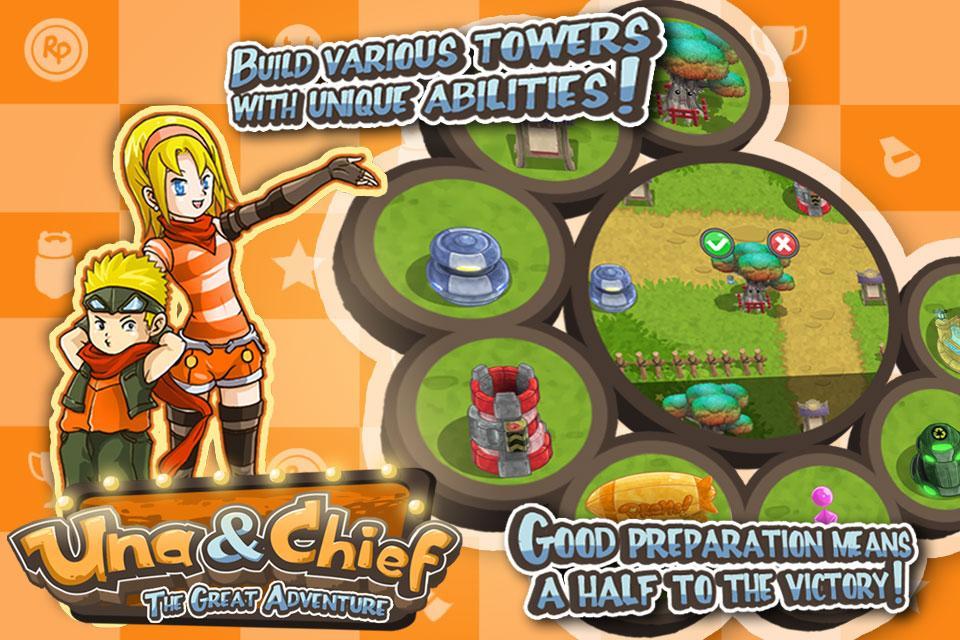 - Build the strongest defense to eliminate enemies in Una and Chief adventure.