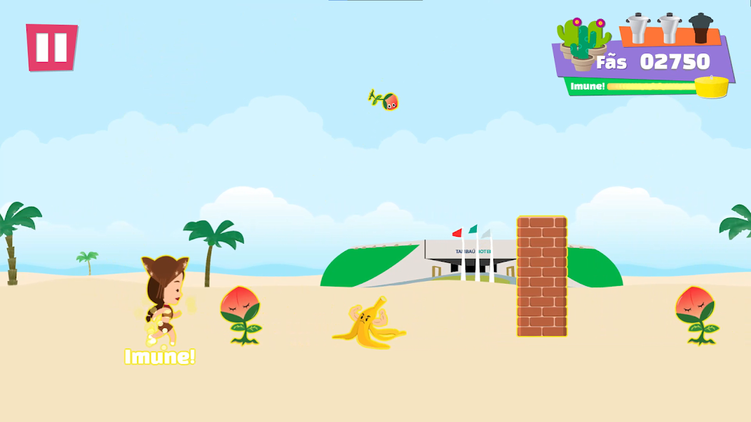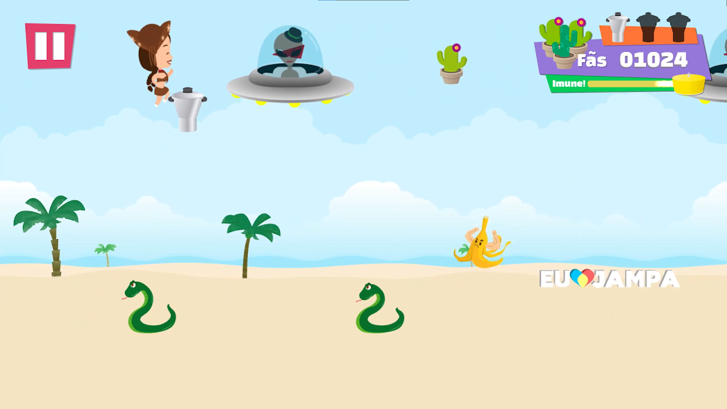 Your mission is to help Increase Juliette's Fandom (Even More? Out!). RUN NONSTOP AND FASTER AND FASTER, DODGING ENEMIES AND JUMPING THE WALLS WHILE COLLECTING CACTI AND COUSCOUS ALONG THE WAY! By Eating a Lot of Couscous, Juliette is imamune, but if she doesn't succceed and the situation gets work, you can talk to the couscuzeiras on your opponents! This Little Game is txurubei, txurubai!