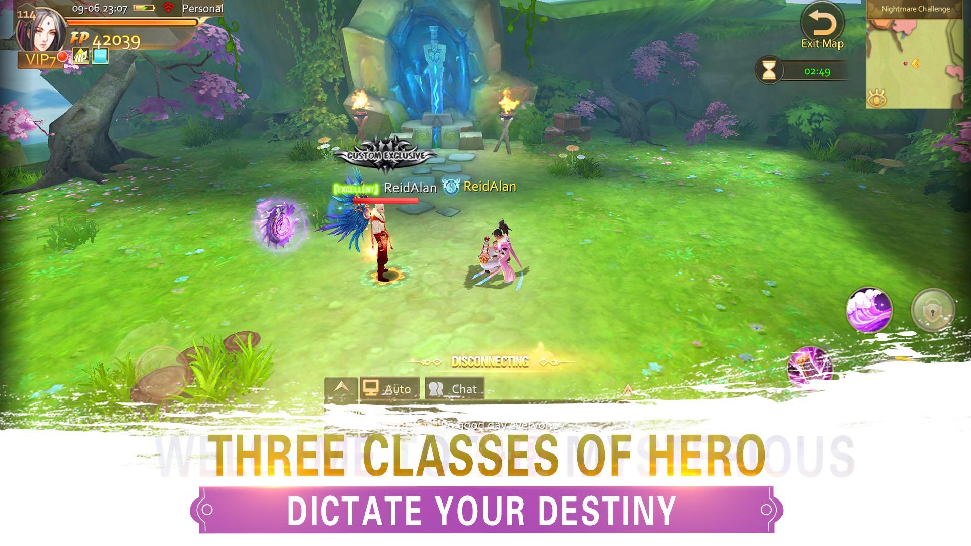 The three major professions of Sword master Martial Arts, and Mage are selected with you. Each profession shows a rich feature. A variety of fashions can be chosen for you to show your uniqueness.
