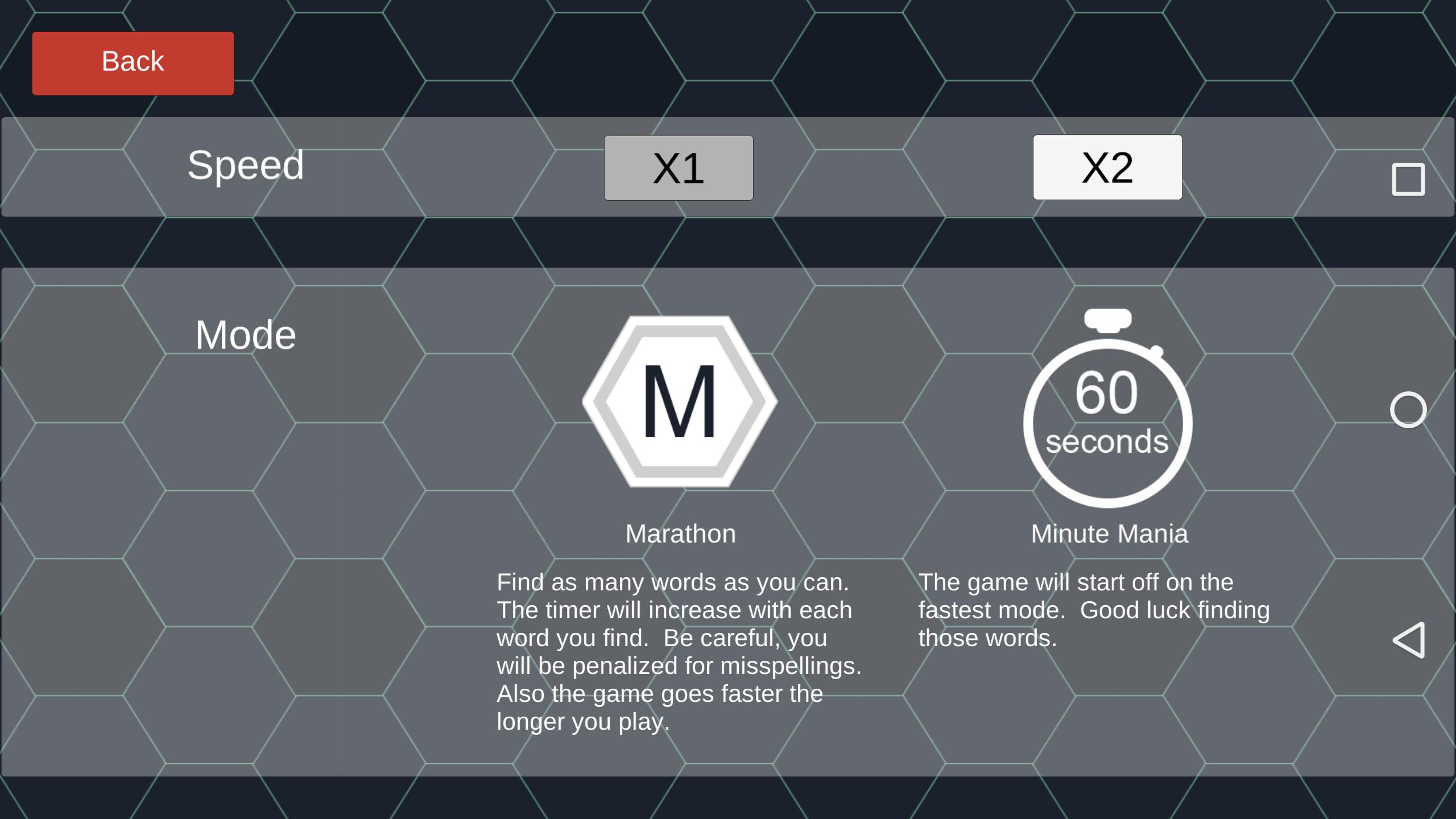 Compete in two modes: Marathon where you find words to keep the clock going as long as you can, and Minute Mania to find as many words as you can in one minute!