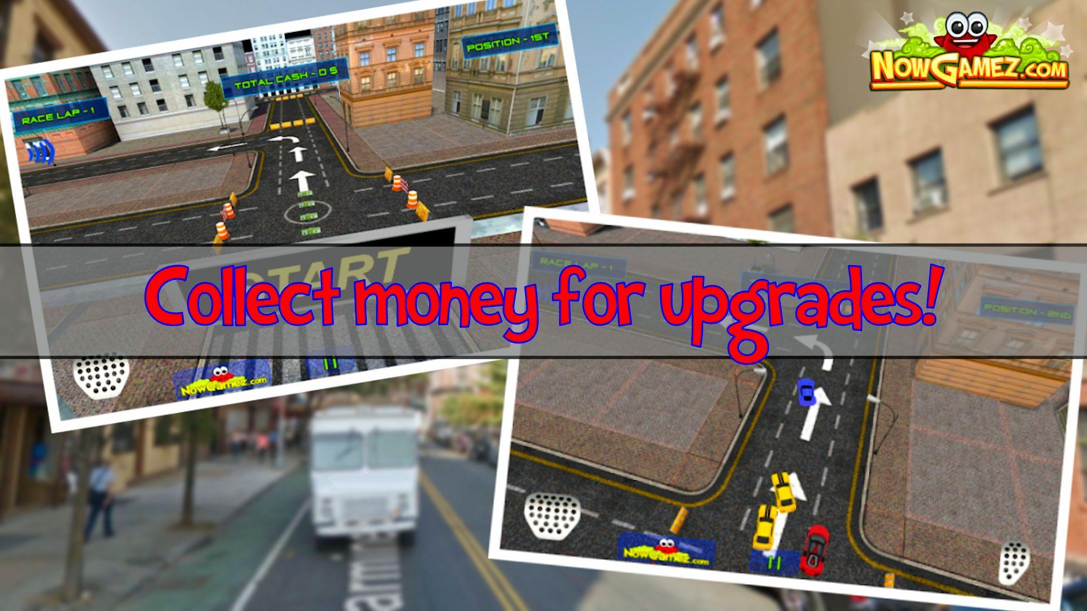 Choose from 4 different vehicles, racing against 3 opponents, in 3 different levels. Collect money in the game to unlock new vehicles and levels. Also use the money to buy the rocket launcher. So decide what you like to do. Blast away your opponents or upgrade your car to the max.
