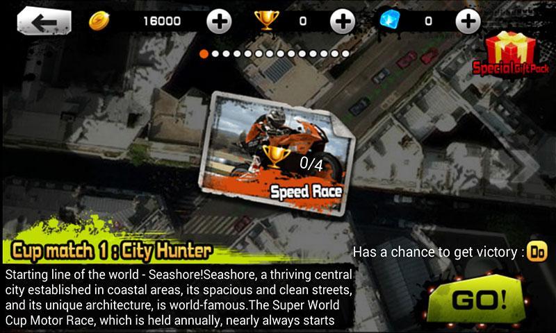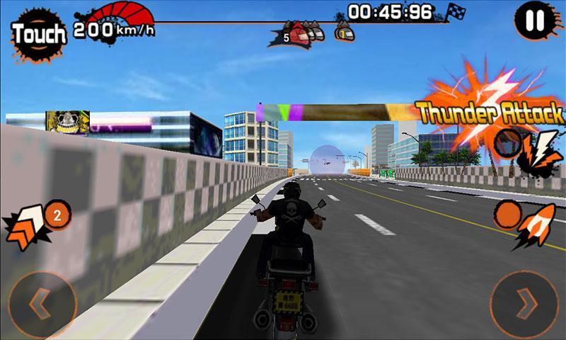Only 8MB package in your phone , It will give you a virtual-reality world by 3D scenes. you will get lot's of moto rcycle by complete the mission. you can attack other riders in game too.