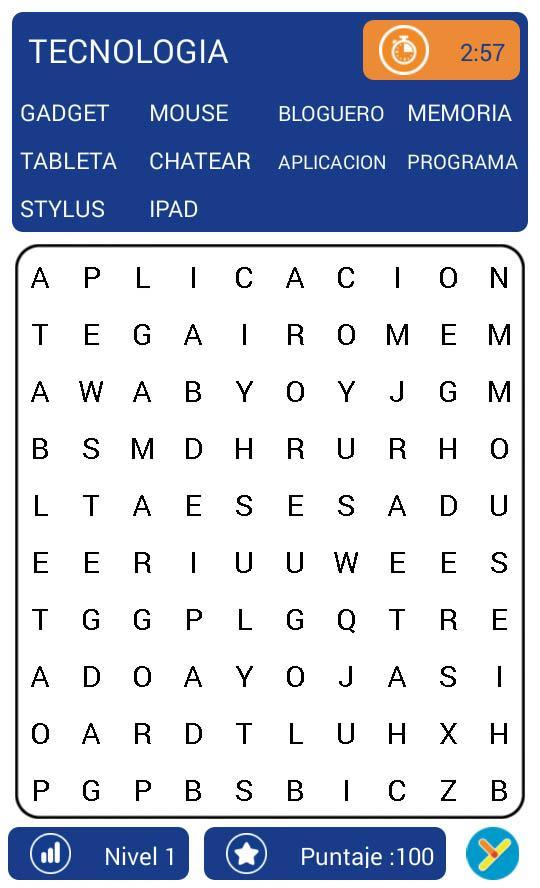The game comes with a list of words for each level which they have to find in a certain time according to the difficulty: