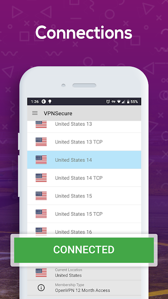 - Daftar lokasi tersedia di www. VPNSecure .me/lokasi atau di dalam aplikasi.