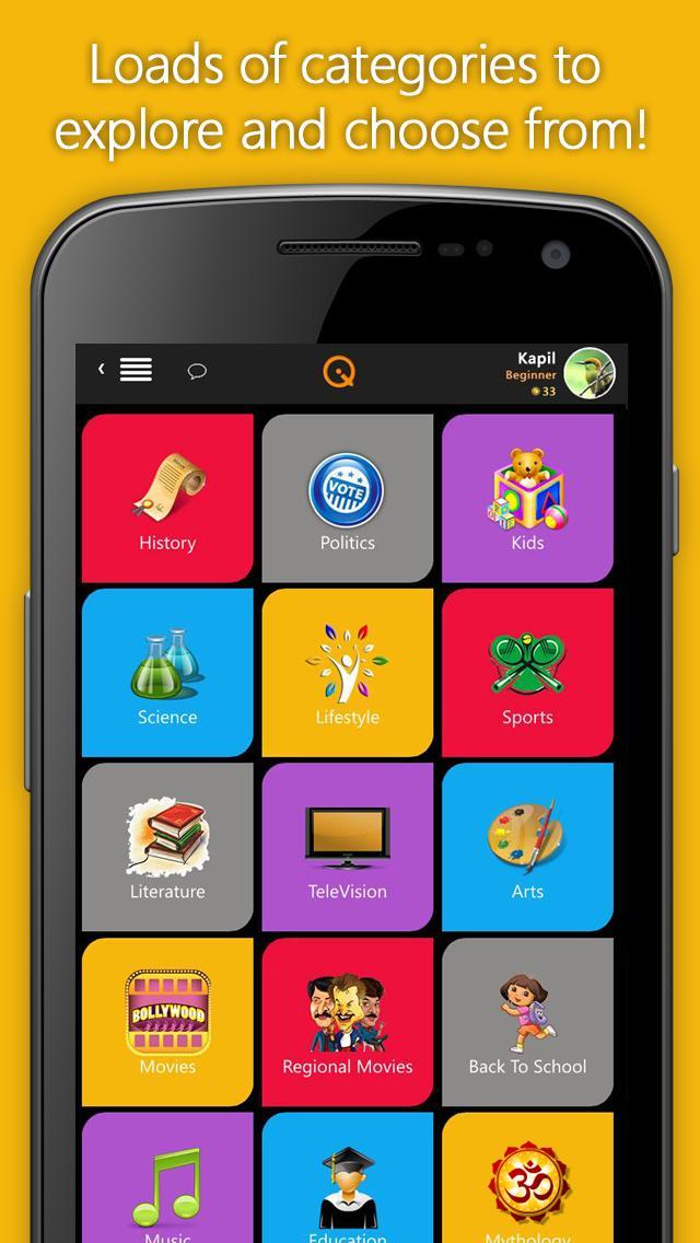 - InQuiz memiliki berbagai macam topik kuis trivia mulai dari film regional hingga Bollywood, serial TV hingga sains roket, teka -teki hingga matematika anak -anak, musik hingga sastra, kriket hingga hoki, mitologi sejarah, pengetahuan umum tentang politik dan segala sesuatu di antara yang mungkin Anda pikirkan.