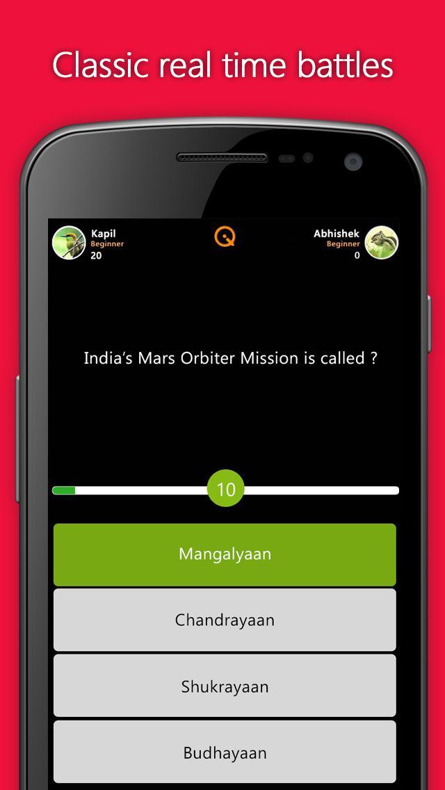 InQuiz saat ini memiliki lebih dari 100.000 pertanyaan kuis, dan konten segar ditambahkan saat Anda membaca sehingga Anda tidak akan pernah kehabisan trivia. Di InQuiz Anda dapat bersaing dan bertarung dengan teman -teman Anda dan/atau pemain Komunitas InQuiz yang terus berkembang dari seluruh dunia untuk mendapatkan Gyan Anda! dan memenangkan hadiah yang menarik.
