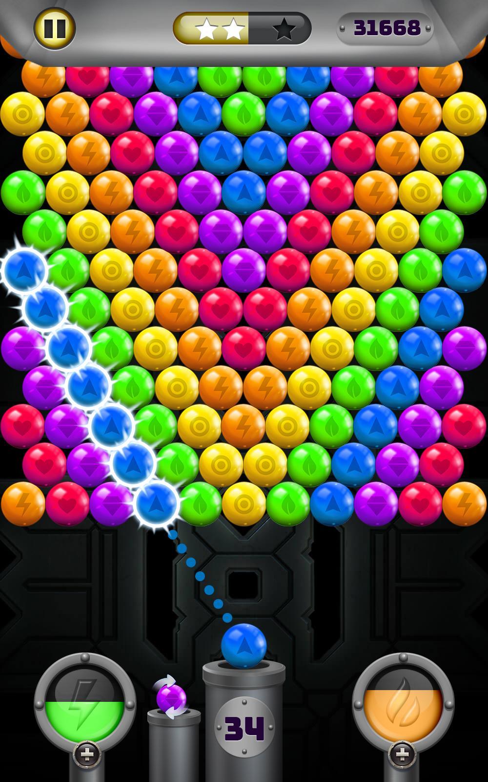 * Ketuk di layar untuk menyeret tujuan laser dan angkat untuk menghancurkan gelembung.