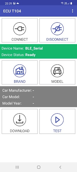アプリケーションはECU T104デバイスを構成する可能性を提供します。車両メーカーを選択し、その車両の構成をモデル化し、 ECU T104デバイスにダウンロードできます。