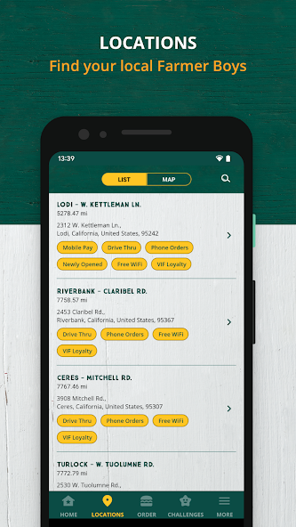 •マップビュー - 携帯電話のGPSを使用して、最も近いFarmer Boys場所を見つけます。
