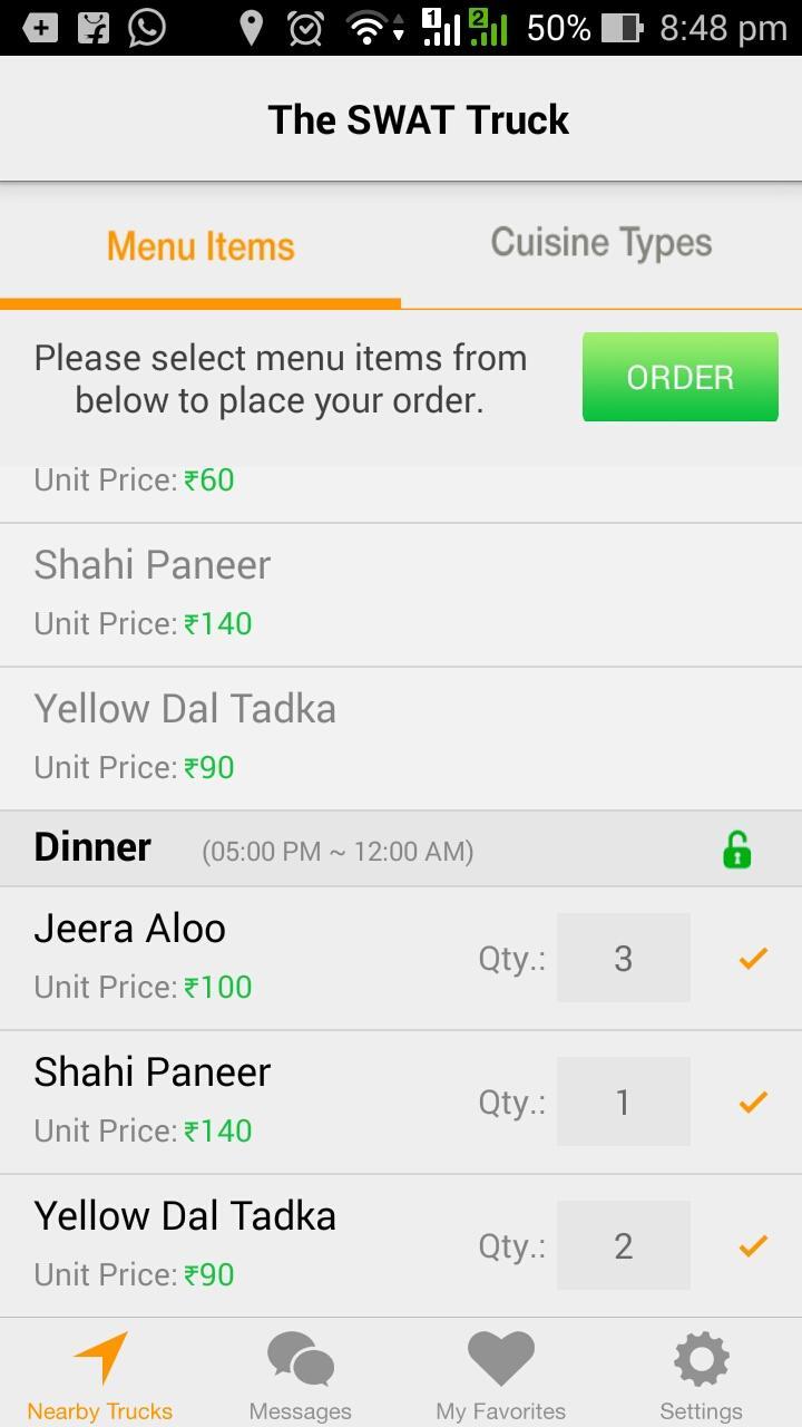 トラックベンダーは、料理の種類、メニュー、メニューの価格を追加できます。彼らは、トラックが地図上に表示されるときに、彼らのビジネス時間の時間を稼ぐ時間を朝食、昼食、夕食を定義できます。また、トラックをオフラインにしたり、モバイル注文を受け入れたり、通知を取得したり停止したりするオプションも提供します。