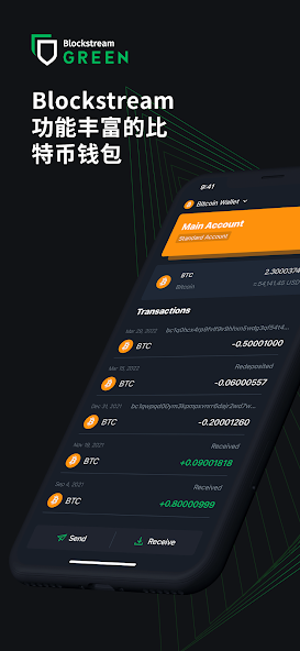 ブロックストリームGreen 、シンプルで安全なビットコインウォレットであり、ビットコインと液体ビットコイン(L-BTC)やテザーUSDTなどの液体ベースの資産の送信と受信を簡単に開始できます。