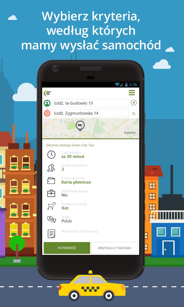 Green Cab Taxiコーポレーションでタクシーを注文するために使用されるアプリケーション。迅速かつ効率的にオンラインで注文します。
