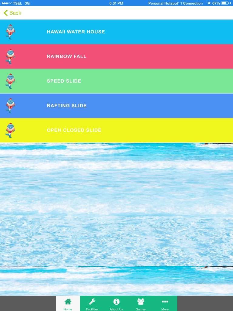 このアプリケーションは、パズルやメモリゲームなどのシンプルなゲームをプレイできることに加えて、ハワイウォーターパークで探索できるタイプの乗り物のプレゼンテーションです。このアプリケーションをダウンロードすることで、ハワイウォーターパークに関する情報通知も入手できます。