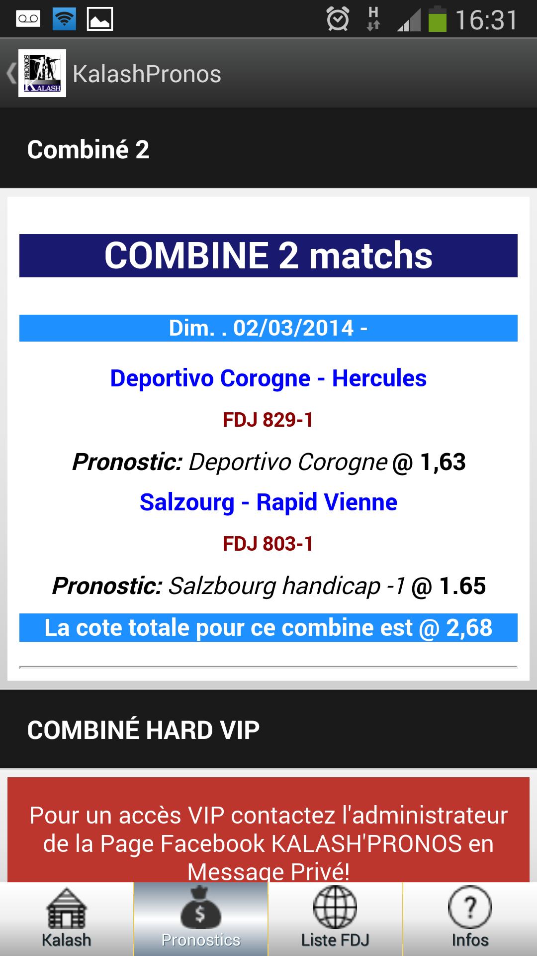 Kalash'Pronosアプリケーションを使用すると、いつでもページの予測とVIPを参照できるようになります。