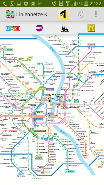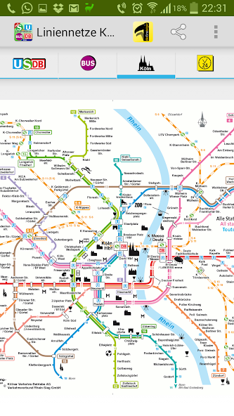 1つのアプリケーションにおけるケルンのすべての重要な地下鉄および鉄道地図。