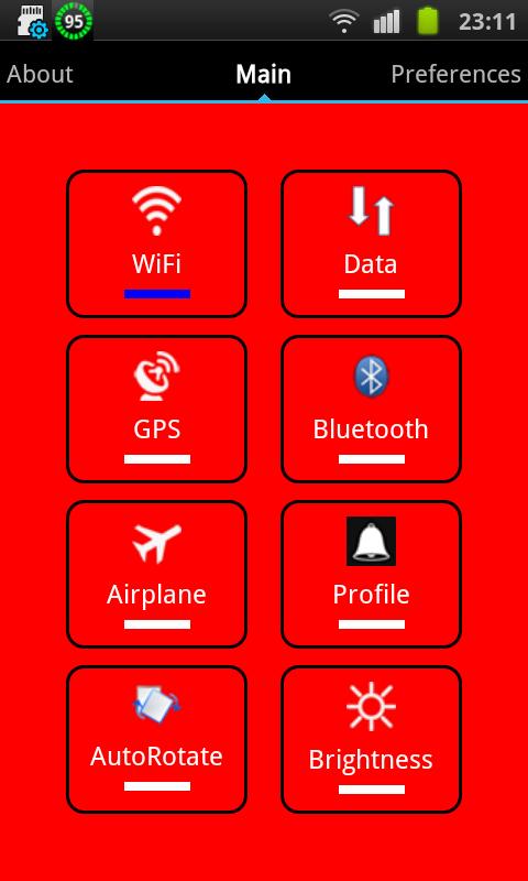 Power & Settings Controlシステム設定を簡単に切り替えることができるマルチインワイジェットのセットです。このアプリには、Wi-Fi、モバイルデータ、Bluetooth、画面回転、スクリーンの輝度、サイレントモード、振動モード、飛行機モード、GPS用のワンクリックスイッチが含まれています。