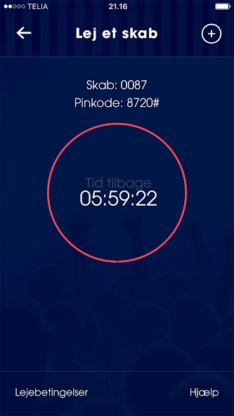 イベント中に、あなた自身のクローゼットを借りることができます。ロッカー番号を入力して、MobilePayを使用してアプリを介して直接支払います。支払いの最後に、イベント全体で使用できるコードをキャビネットに受け取ります。