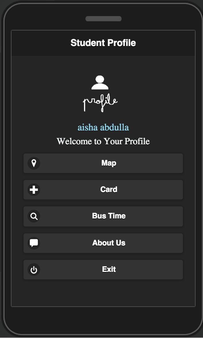 私たちのアプリはUAE iGOと呼ばれています!。これは、バスの運転手がスマートフォンのバーコードをスキャンすることで学生の住居を見つけるのに役立つアプリです。それを行うことで、彼らの場所が現れてドライバーのGPSにピン留めされ、彼は簡単にピンポイントをたどり、学生を自宅からドロップ/ピックします。