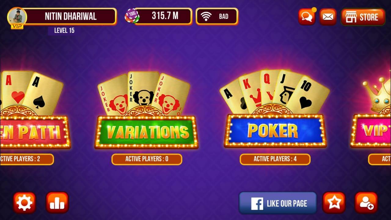 アリンモードのティーンパティ、ティーンパッティバリエーション、ティーンパッティバトル、ポーカー、スロット