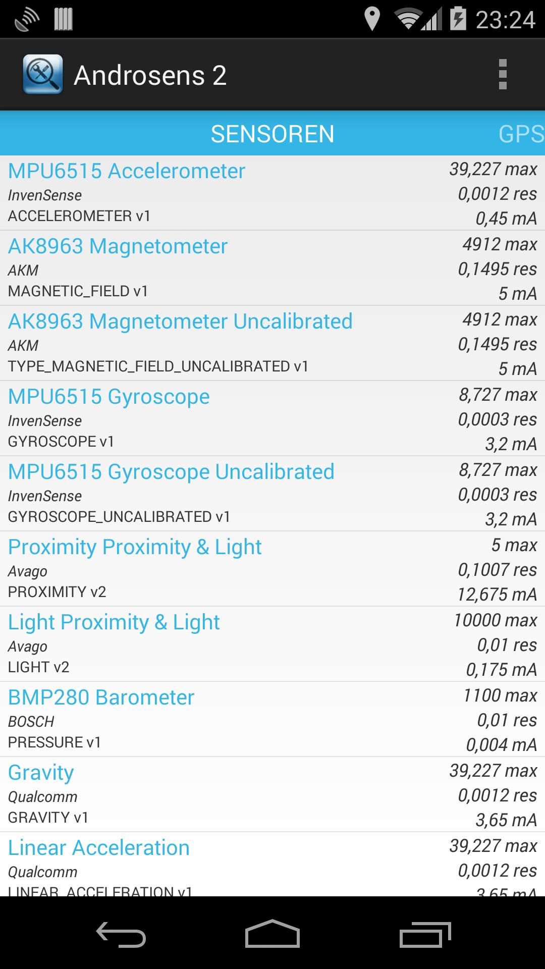 좋은 일이 나아지고, Androsens에 대한 오랫동안 기다려온 속편이 최고의 무료 센서 도구 상자가 도착했습니다. Androsens 2 사용 가능한 모든 센서 및 GPS 정보를 무료로 표시하며 현재 Android Wear 장치를 지원합니다! 공급 업체 (Bosch, Qualcomm, Akm, Avago)에 관계없이 모든 장치 센서를 작동하십시오. 라이브 센서 데이터가 동적 차트를 생성하는 것을 볼 수 있습니다. 자이로 스코프, 조명, 가속도, 기압계 및 더 많은 센서를 표시 할 수 있습니다. 장치의 모든 센서를 볼 수 있습니다. 가시 GPS 및 글로나스 위성을 무료로 추적하십시오. GPS NMEA 데이터를 봅니다. 당신이 원하는 모든 것이 바로 여기에 있습니다! 보너스로 나중에 분석을 위해 모든 데이터를 SDCard에 로그인 할 수도 있습니다. 기록 된 데이터는 다양한 전화 제조업체의 센서/GPS 기능을 비교하기위한 좋은 시작입니다. 최고의 센서 트래커는 다시 한 번 무료로 돌아 왔습니다. 이제 장치의 GPS 기능을 친구와 비교할 수 있습니다. 이 GPS 위성 데이터는 SDCard의 CSV 파일로 내보낼 수 있습니다. 그것의 어두운 것과 오픈 소스! gpl v3 https://code.google.com/p/androsens2/