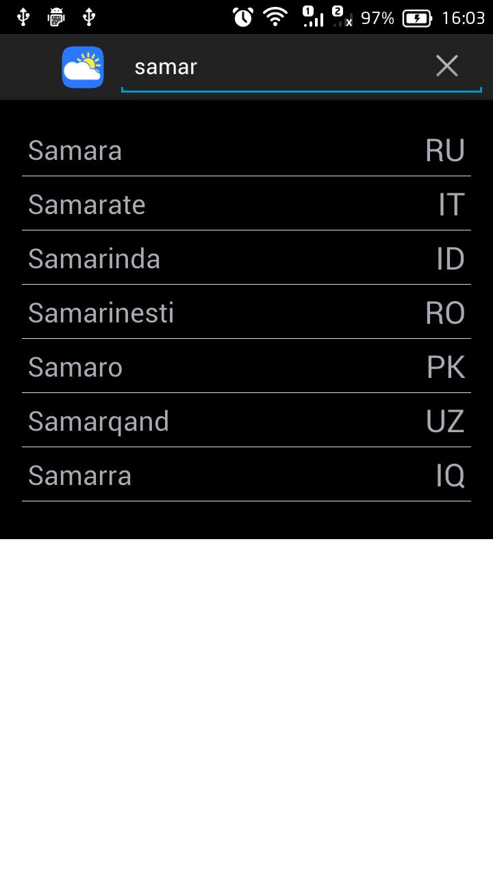 선택된 도시의 현재 날씨를 볼 수있는 간단한 응용 프로그램.